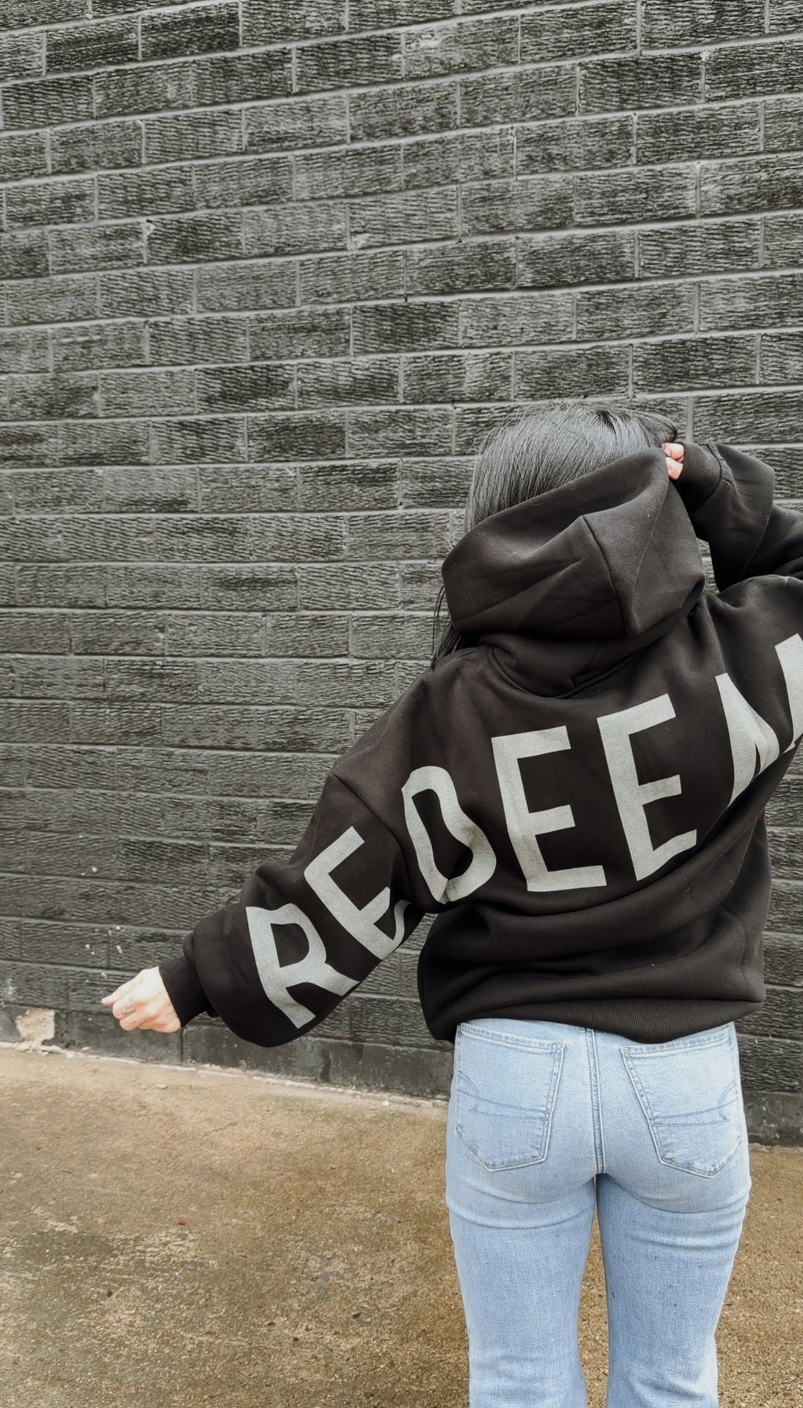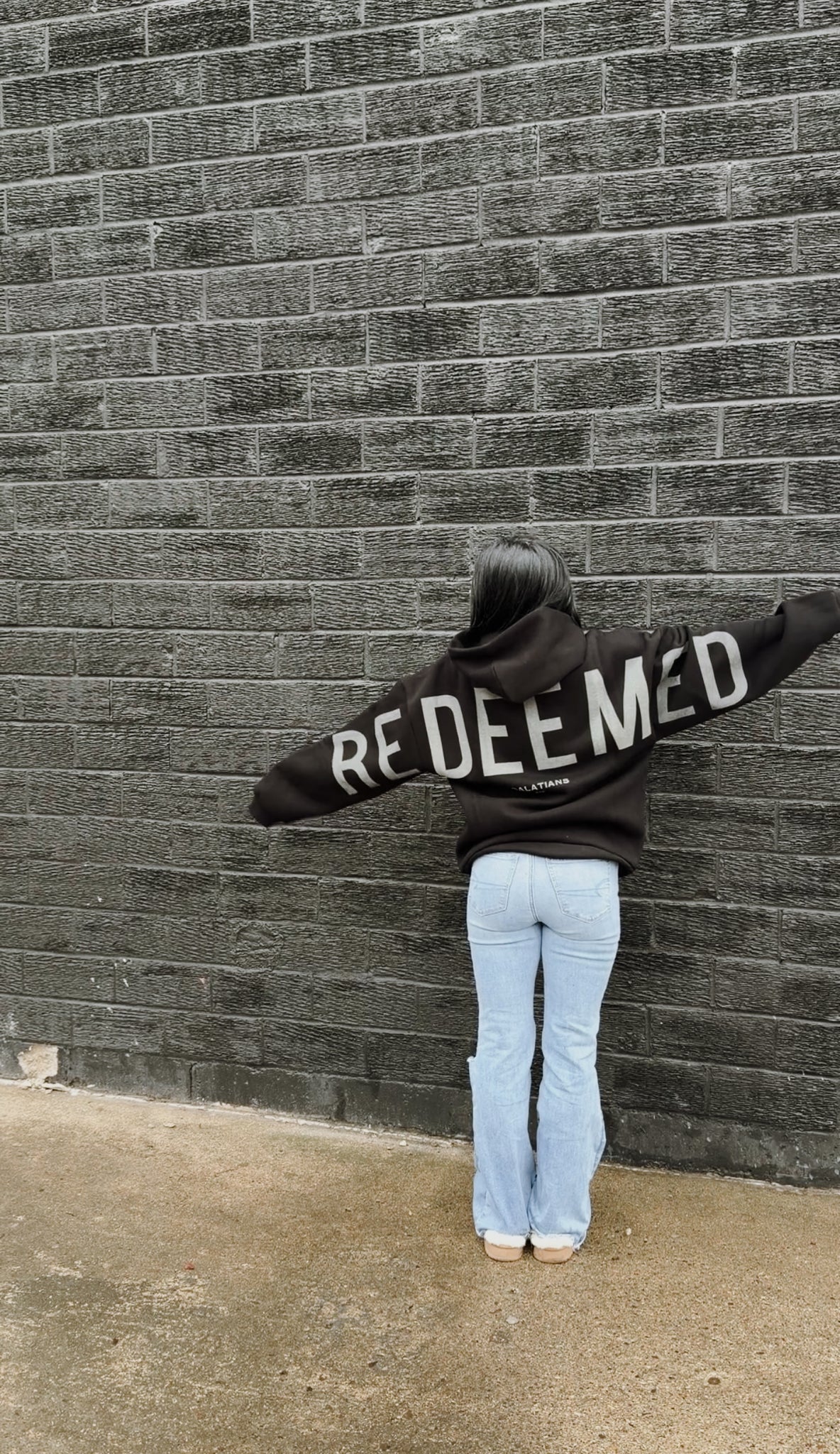 Gods Love Overcomes oversized hoodie. FORGIVEN across the back, psalm 32:1