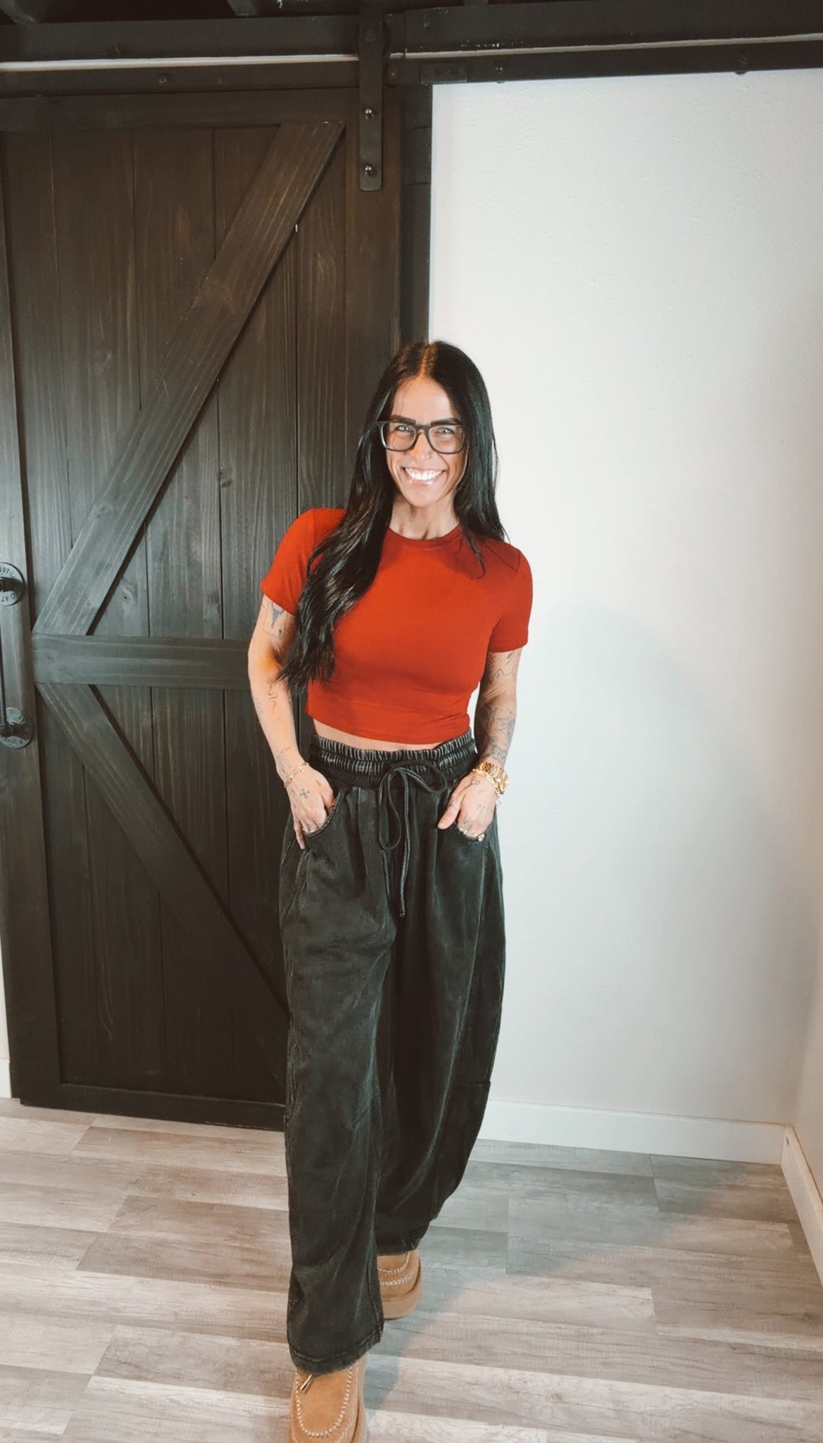 Hannah is normal size small wearing size small.